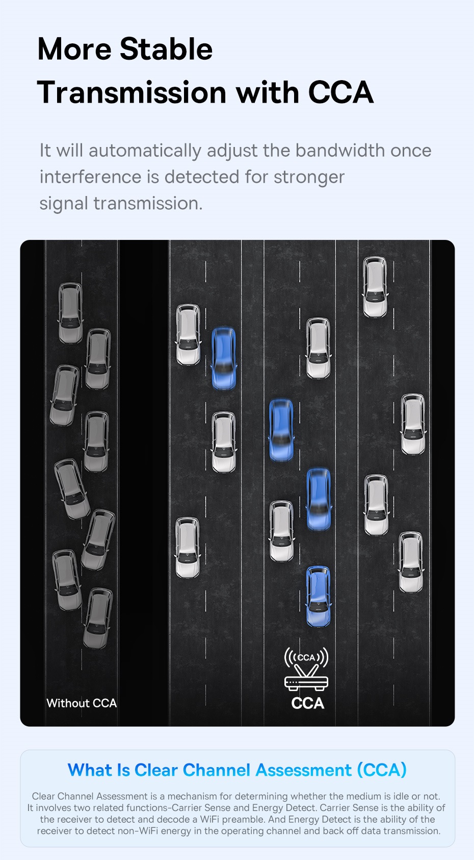 Công nghệ CCA: Tự động tránh kênh nhiễu, giúp tín hiệu Wifi ổn định và mạnh mẽ hơn.