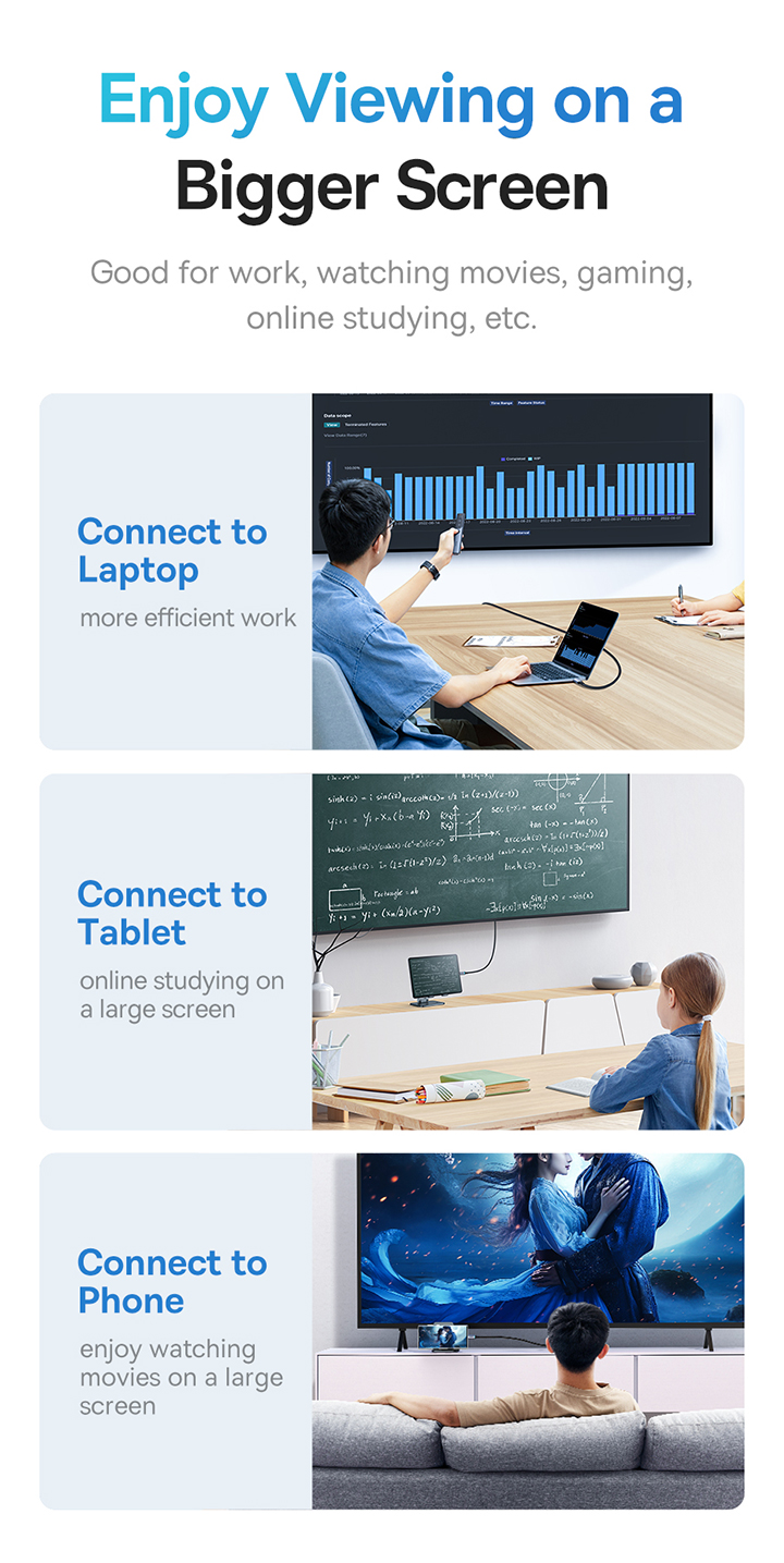 Cắm là chạy (Plug and Play): Không cần cài đặt, tương thích với laptop, máy tính bảng có cổng Type-C hỗ trợ xuất hình (DP Alt Mode).
