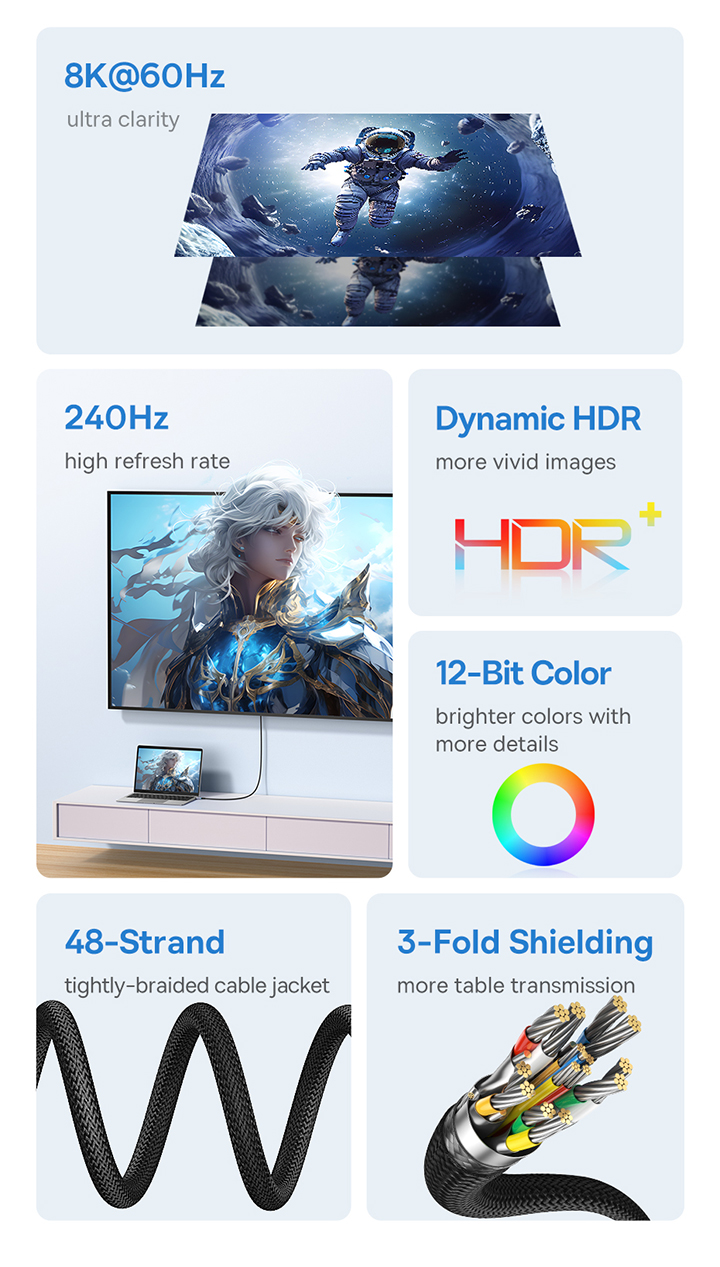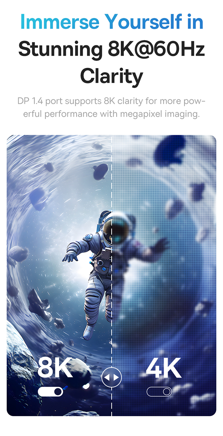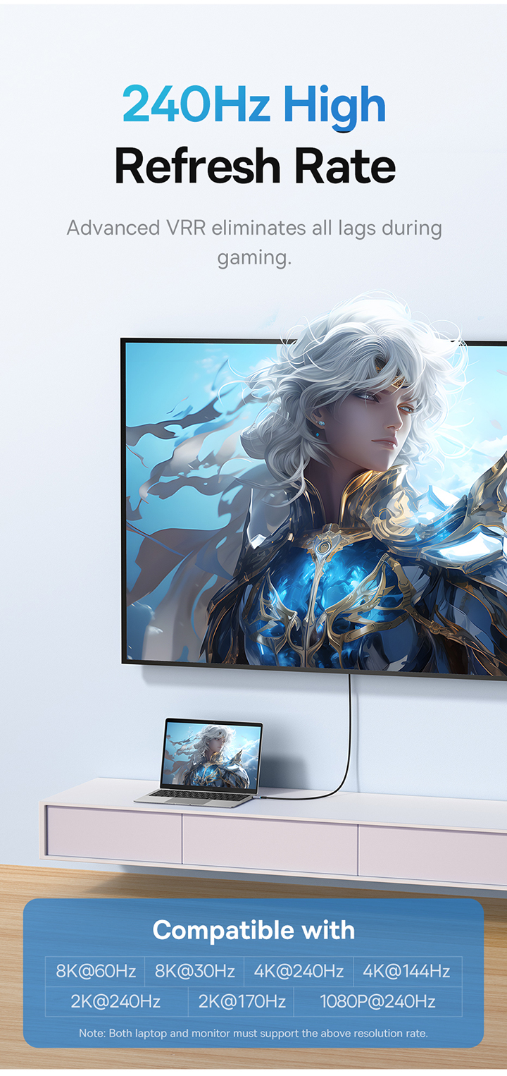 Hỗ trợ độ phân giải 8K@60Hz: Cho hình ảnh siêu nét, chi tiết và sống động.