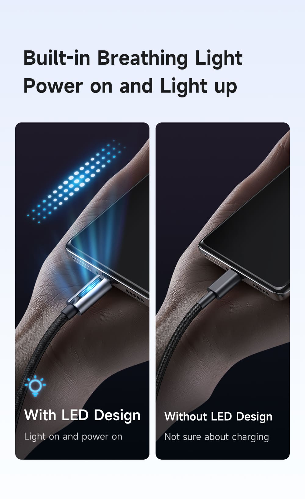 💡 Đèn Báo Sạc "Hơi Thở" Thông Minh: Tích hợp đèn LED với hiệu ứng 'thở' tinh tế, không chỉ giúp bạn dễ dàng xác định trạng thái sạc và vị trí cáp trong bóng tối, mà còn tạo nên một điểm nhấn công nghệ đầy phong cách.