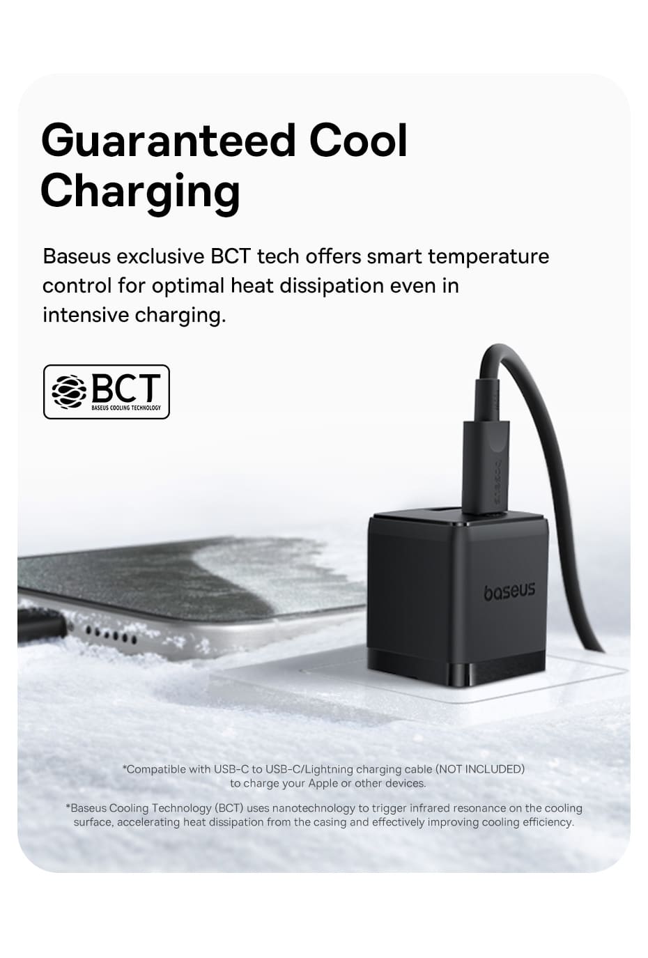 🧊 Sạc Mát & An Toàn: Tích hợp công nghệ kiểm soát nhiệt độ BCT độc quyền của Baseus, giúp củ sạc tản nhiệt hiệu quả và duy trì nhiệt độ thấp ngay cả khi đang sạc nhanh, bảo vệ an toàn cho pin thiết bị.