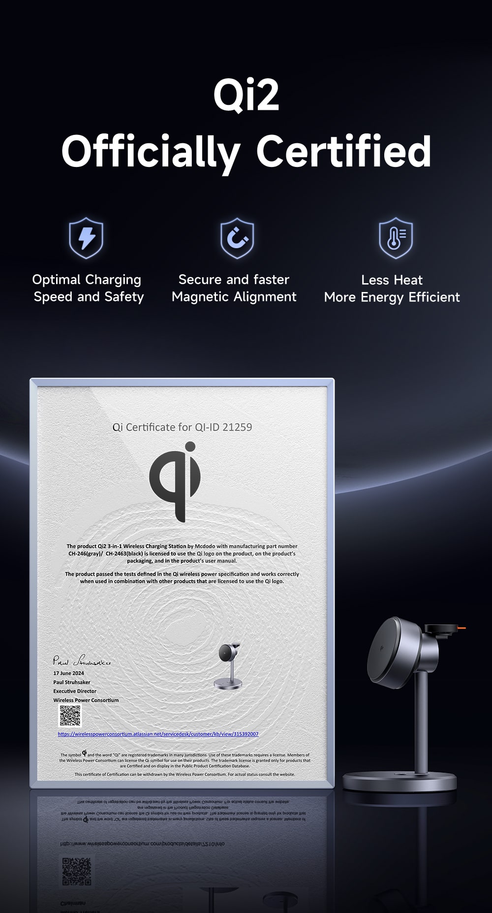 ○ Chứng nhận chuẩn sạc nhanh không dây Qi2 tiên tiến.