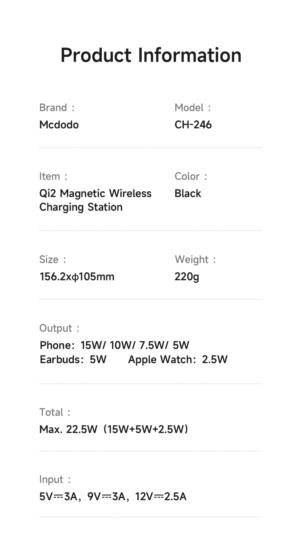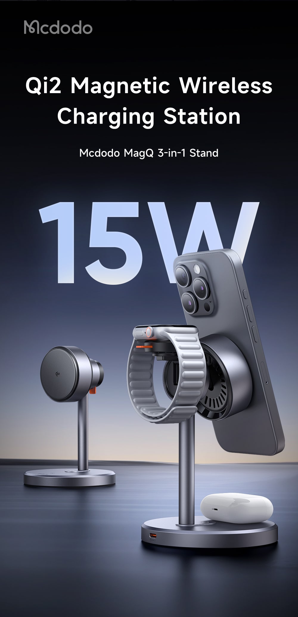 | Tên | Đế Sạc Không Dây Mcdodo MagQ Qi2 3-in-1 Wireless Charging Stand (Kèm cốc cáp sạc) |