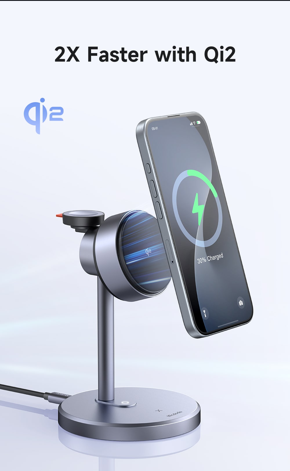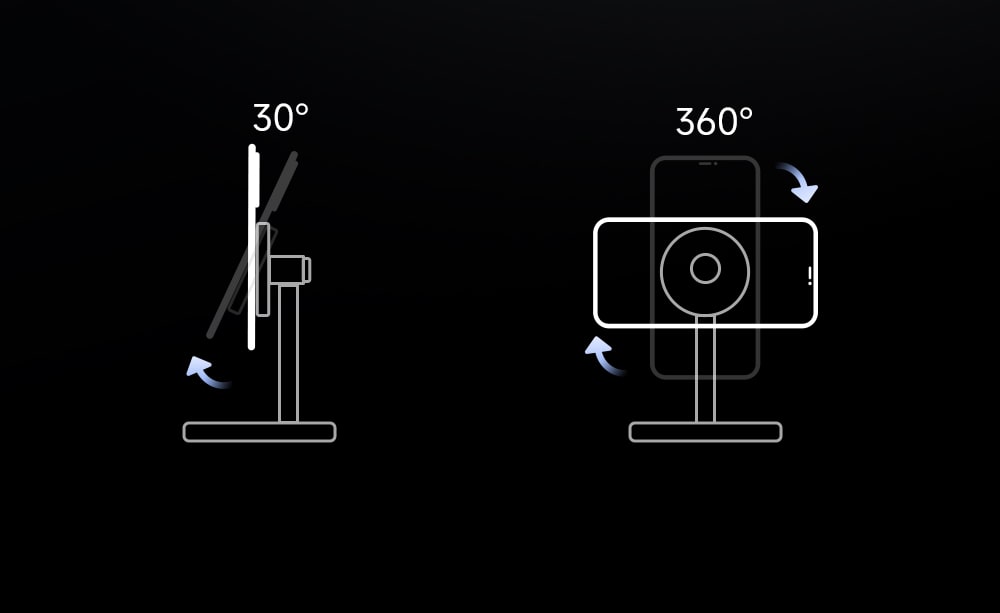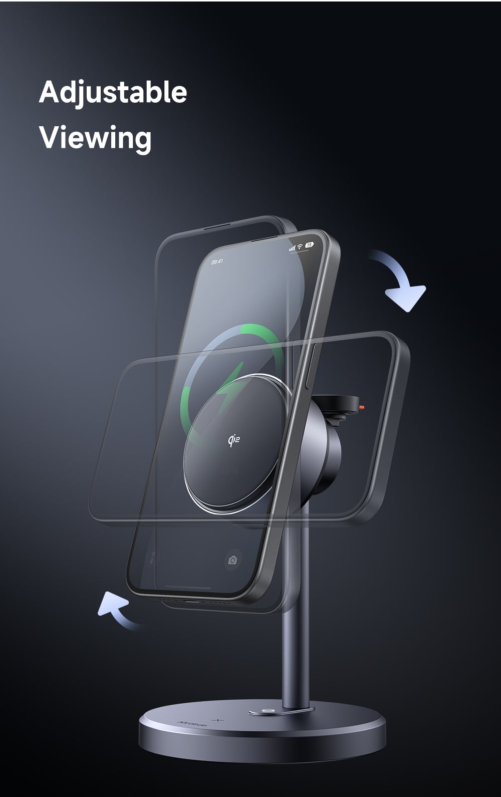 ○ Đế sạc điện thoại và đồng hồ có nam châm và khả năng điều chỉnh góc.