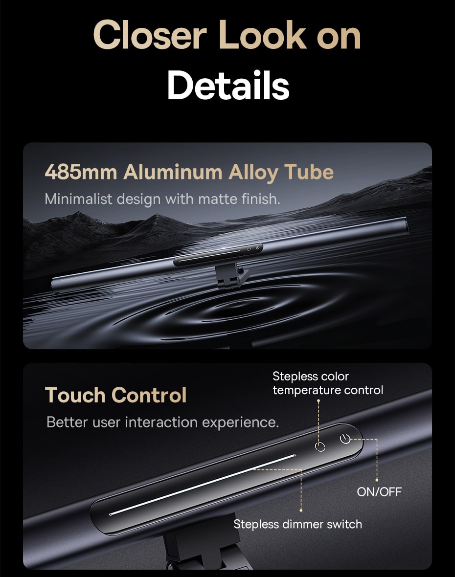 👌 THIẾT KẾ NAM CHÂM & TIẾT KIỆM KHÔNG GIAN: Nói lời tạm biệt với những chiếc đèn bàn cồng kềnh. Baseus i-wok3 sử dụng đế gắn nam châm thông minh, giúp bạn lắp đặt và tháo rời đèn chỉ trong tích tắc. Thiết kế treo trên màn hình giúp giải phóng 100% không gian quý giá trên bàn làm việc của bạn.