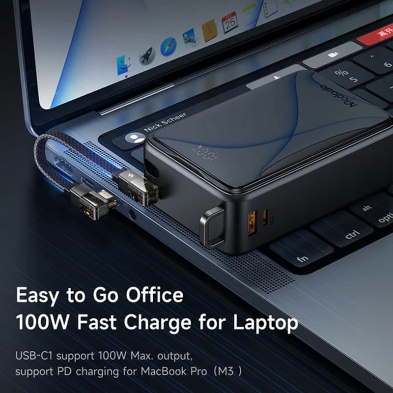 💻 SỨC MẠNH 100W - SẠC CÙNG LÚC 2 LAPTOP: Đây là tính năng đột phá nhất! Cổng Type-C có thể cung cấp công suất tối đa lên đến 100W để sạc nhanh cho laptop cấu hình cao. Đặc biệt hơn, pin dự phòng này đủ mạnh để sạc nhanh cho 2 laptop cùng một lúc, một điều mà ít có pin dự phòng nào làm được.