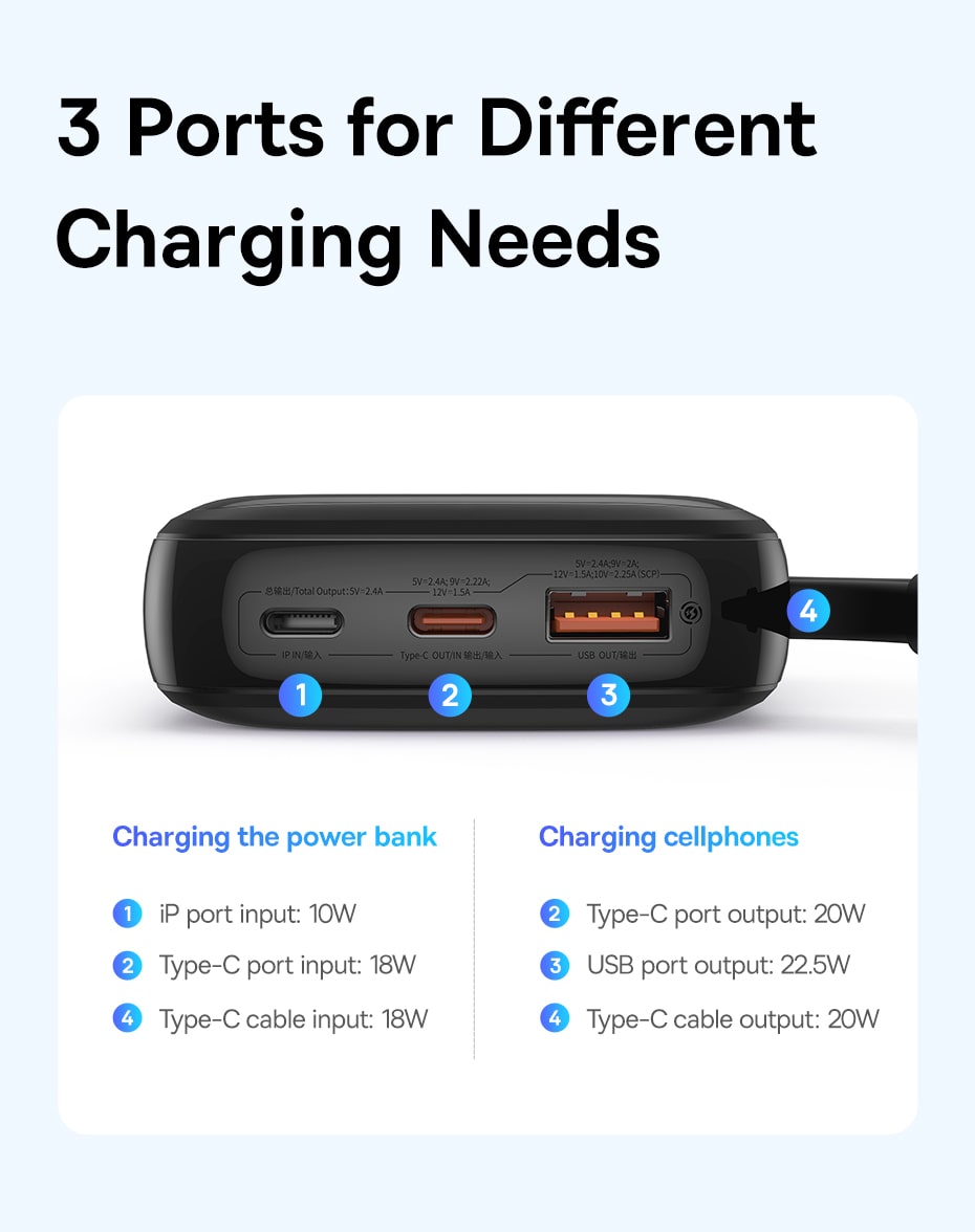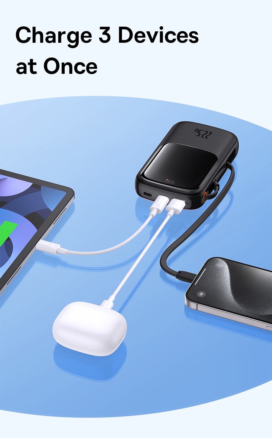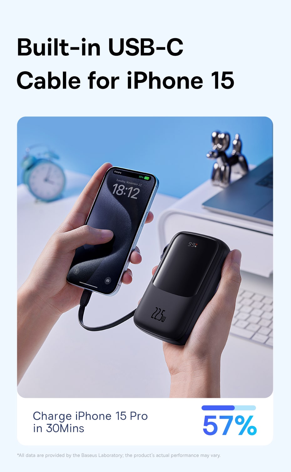 Sạc Dự Phòng Baseus Qpow Pro+ 10000mAh | Kèm Sẵn Cáp Type-C, Sạc Siêu Nhanh 22.5W