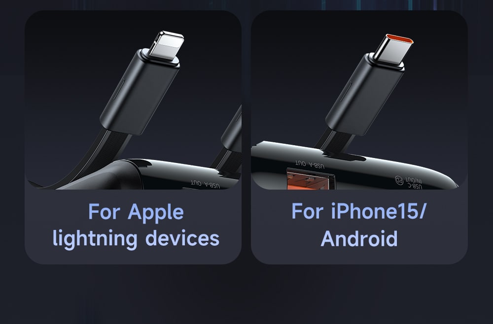 ○ Thiết kế độc đáo: Tích hợp sẵn 2 dây sạc (1 Type-C và 1 Ln) ngay trên thân pin.