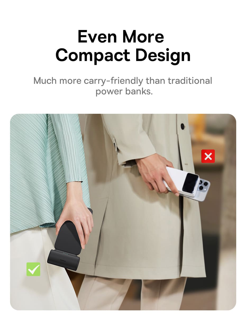 🤏 Thiết Kế Mini 5000mAh, Siêu Gọn Nhẹ: Với kích thước chỉ bằng một thỏi son và dung lượng 5000mAh, nó đủ sức sạc đầy khoảng 1 lần cho hầu hết các dòng điện thoại. Hoàn hảo để bỏ túi, ví và sử dụng trong các tình huống khẩn cấp.
