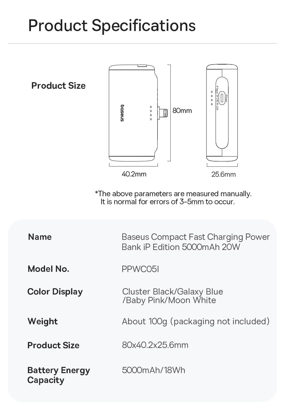 | Tên | Sạc Dự Phòng Mini OS-Baseus Compact Fast Charging Power Bank iP Edition 5000mAh 20W |